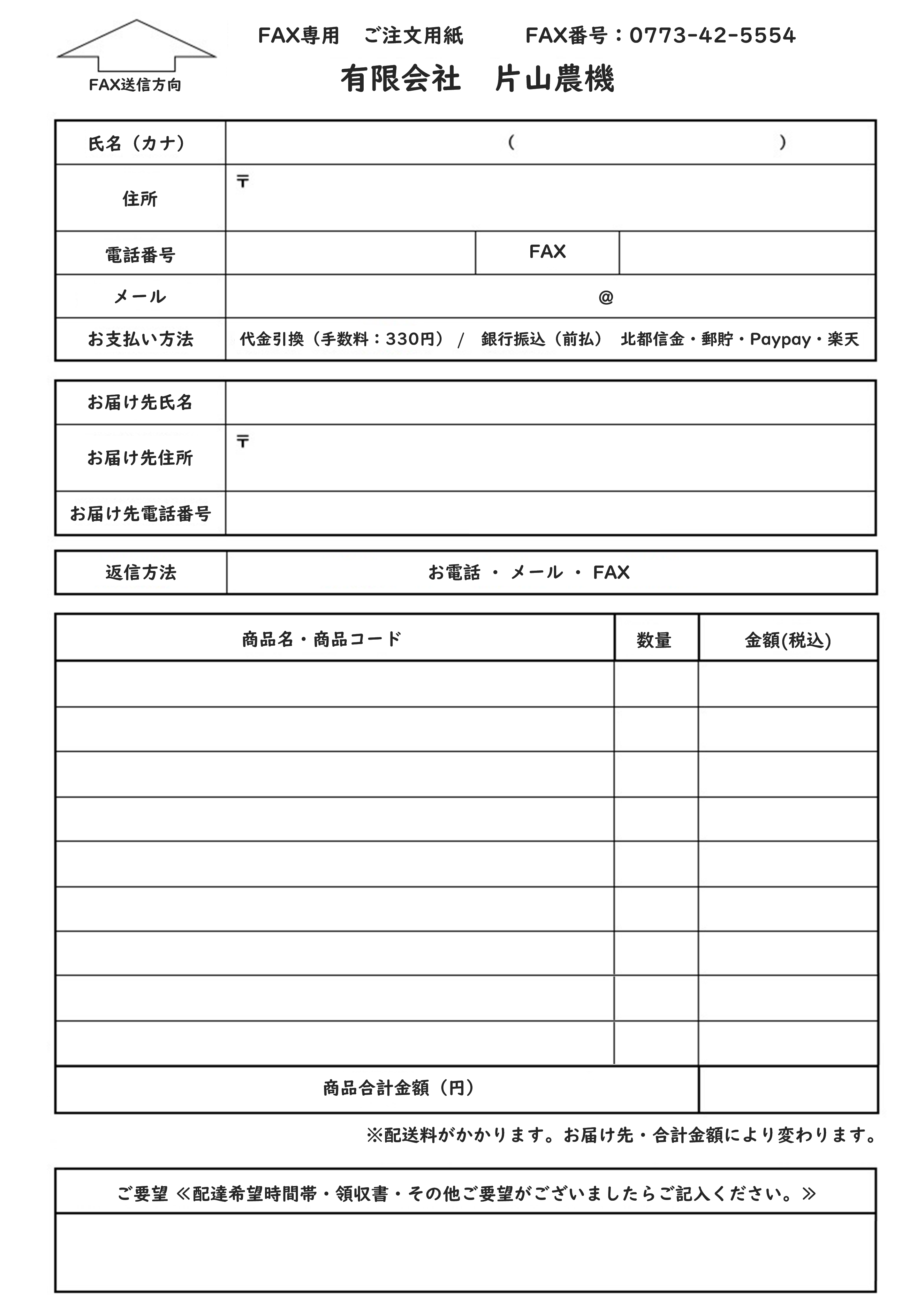 FAXでのご注文に対応できるよう、FAX専用注文用紙を作成いたしました。
