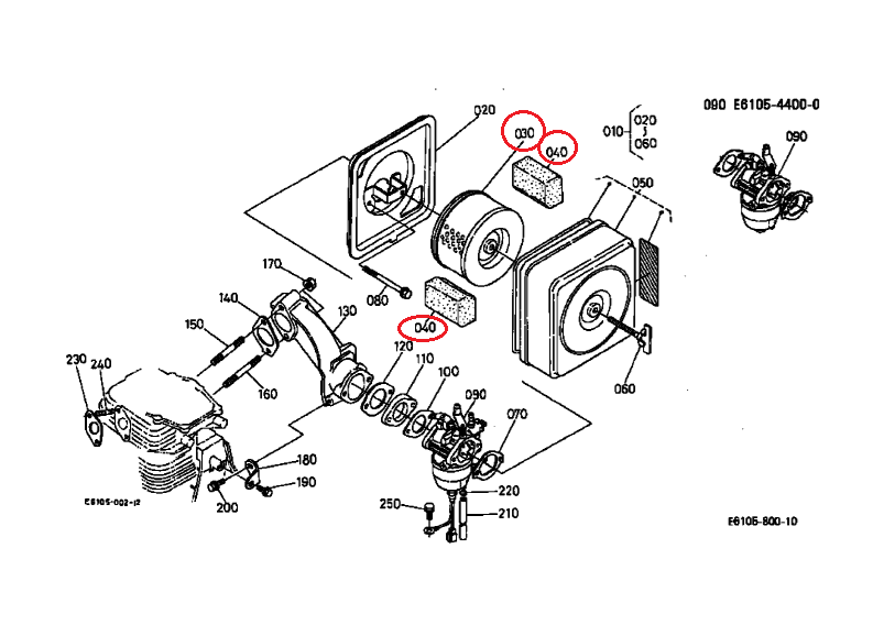 E6105-11080 1個 エアクリーナエレメント12182-11210 2個 サブフィルター(交換に必要です)
