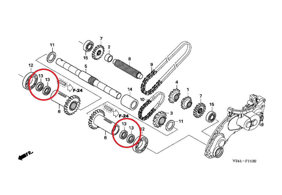 【1台分】画像赤丸部分図13:91251-V24-003 オイルシール 4個