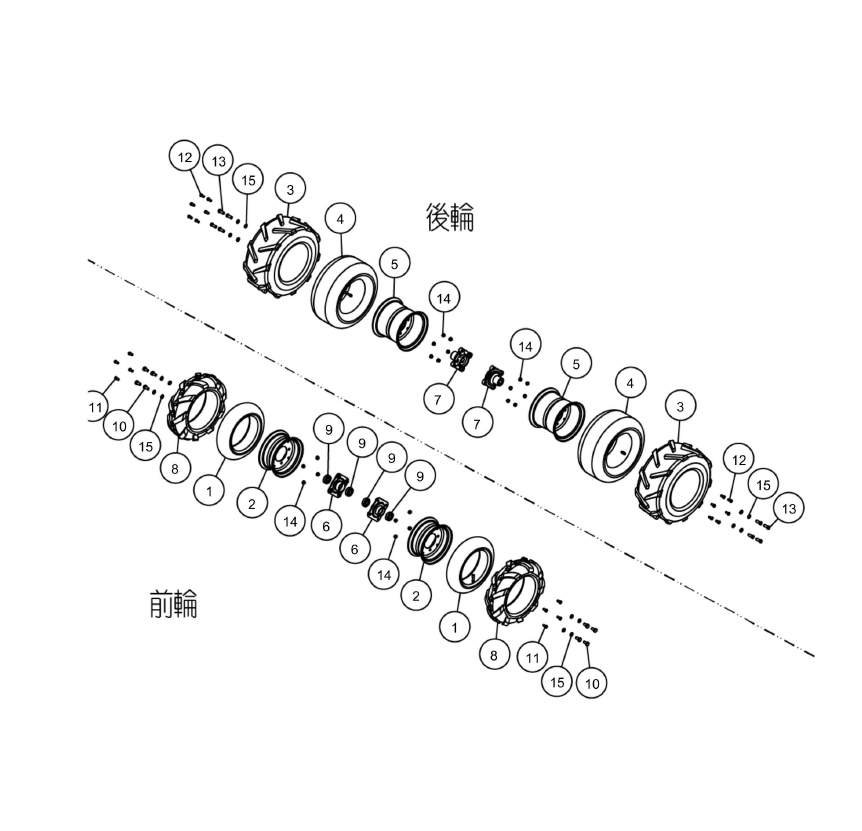 | 17 | 80-1751-412-00 | 後輪タイヤR ASSY 16*7.00-8 | 3、4、5、12、14 |